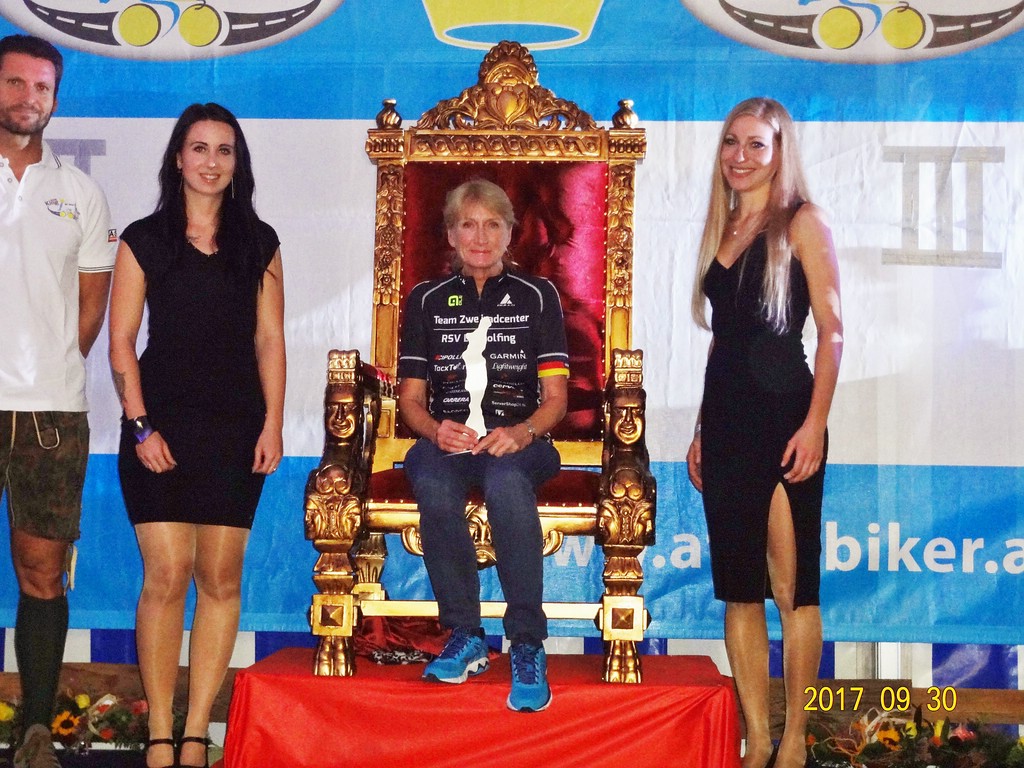 Vom RSV Dingolfing ging in der Klasse „Rennrad Frauen U70w“ Johanna Hamberger an den Start und holte sich sensationell in einer Zeit von 1:27:42 Std. (Schnitt 32,3 km/h) den Sieg und wurde damit „Queen oft he Lake“ in ihrer Altersklasse. Mit diesem Ergebnis wäre sie auch in der „jüngeren“ Damenklasse RR U60w auf Platz eins gefahren. Werner Käser konnte in der Zeitfahrklasse „EZF U70m“ in 1:09:49 Std. (Schnitt 40,6 km/h) einen sehr guten dritten Platz belegen. Erster wurde hier mit 8,8 Sekunden Vorsprung der Österreicher Walter Prodinger in 1:09:40 Std. vor Günter Gugler (Österreich). Die „Krönungszeremonie“ auf dem Königsstuhl der schnellsten Fahrer und Teams wurde traditionell im Rahmen der Siegerehrungen im Festzelt am Attersee würdevoll gestaltet.
